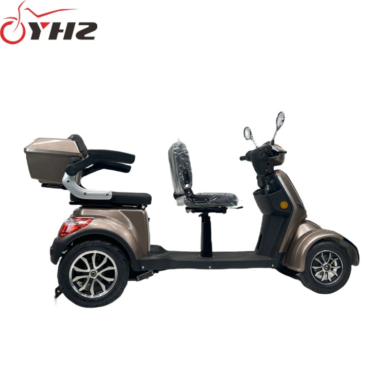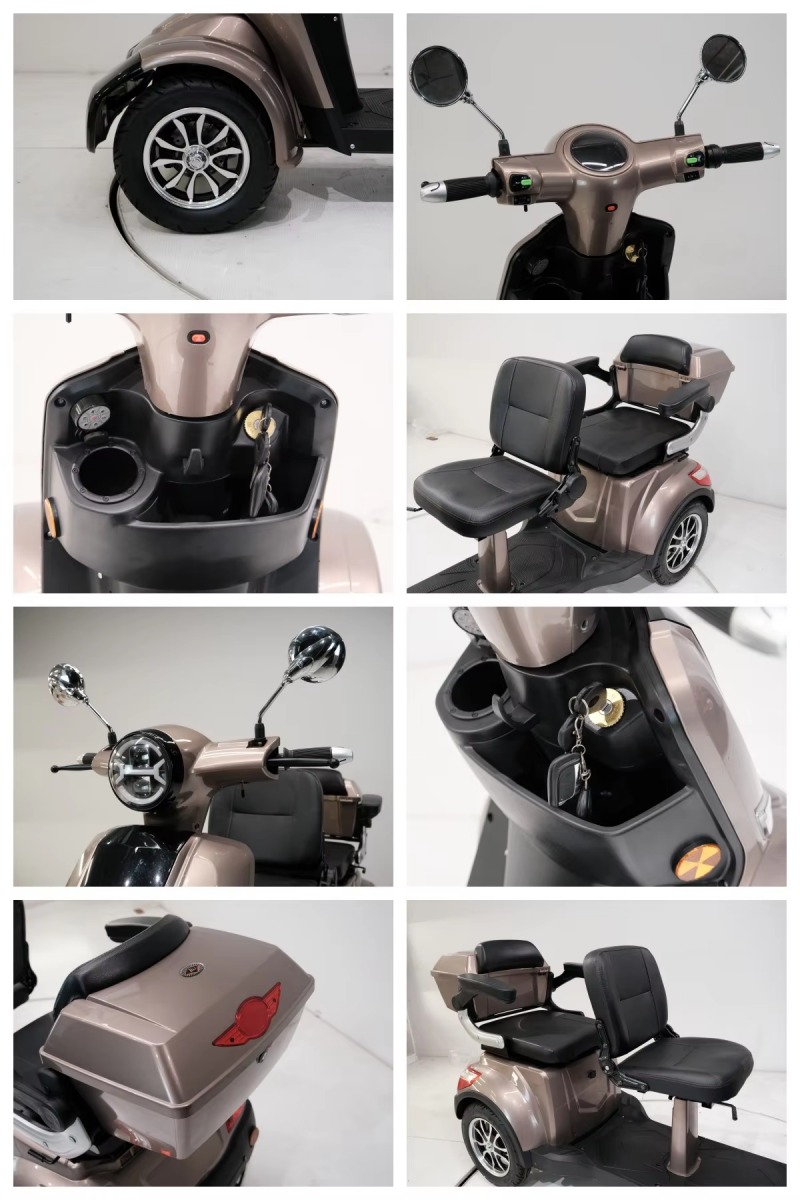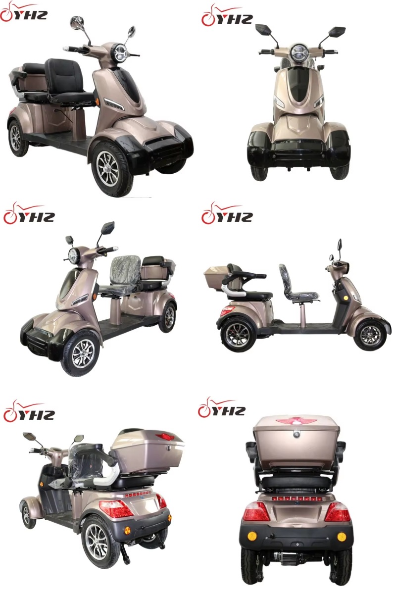 This four-wheeled, two-seat electric mobility scooter features a stylish design and a durable ABS plastic shell. It's available in multiple colors including red, blue, black, and white. The four-wheel structure provides a stable riding experience, making it suitable for everyday short-distance commuting.