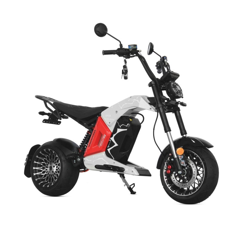 This two-wheeled electric scooter features a powerful 2000W motor and an optional 60V 20Ah lithium battery, delivering strong performance and a top speed of 45-75km/h, easily handling both urban commuting and short trips. It employs a disc brake system and 12-inch tires, ensuring safe and stable riding with a robust structure. Optional EEC/CE certification meets compliance requirements in Europe and other regions, making it an excellent choice for users seeking both power and compliance.