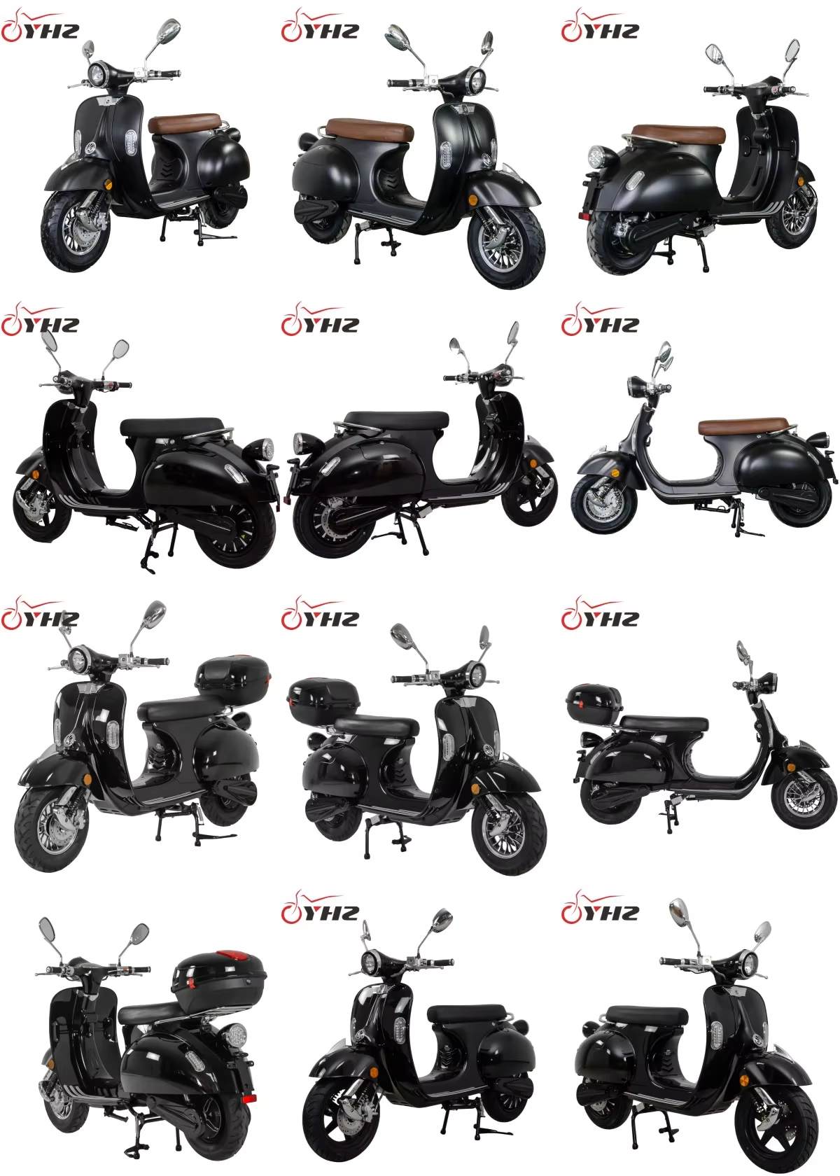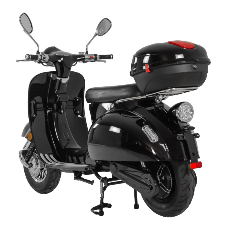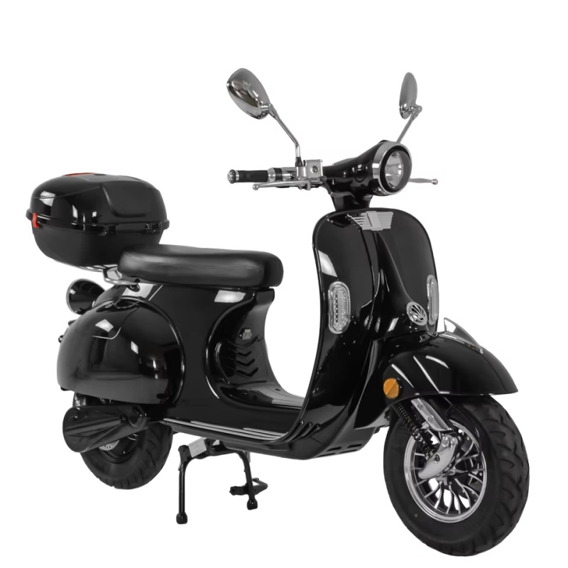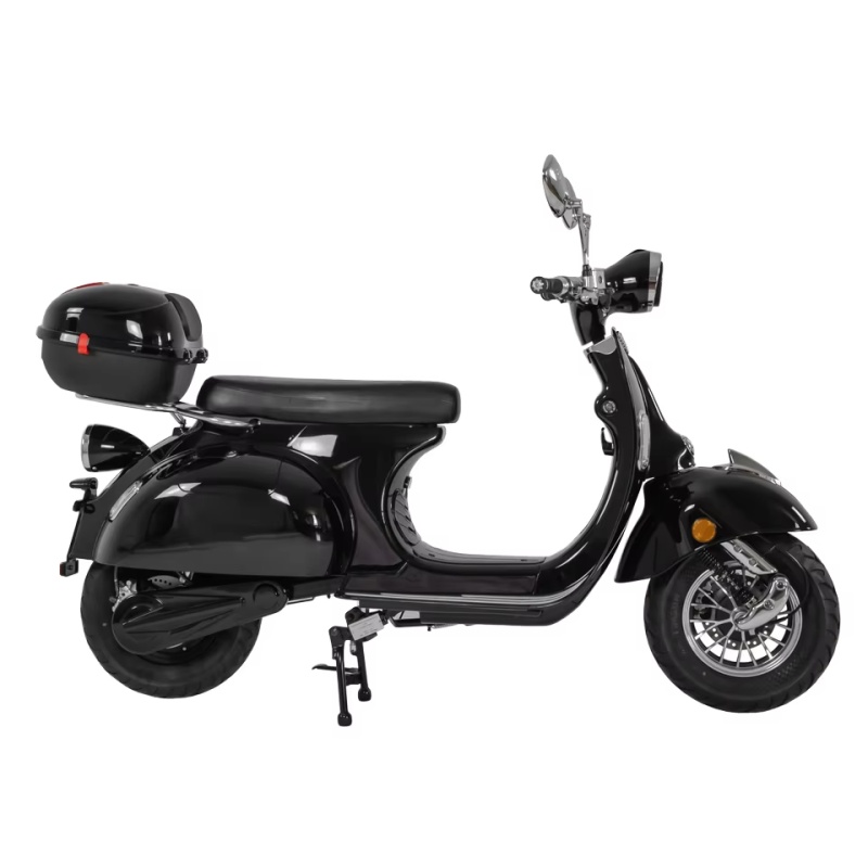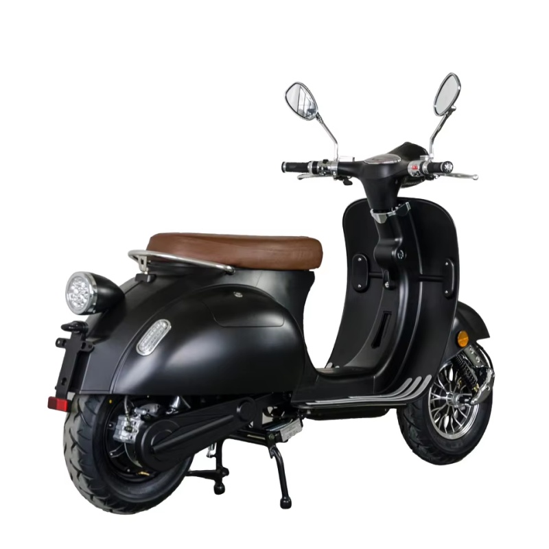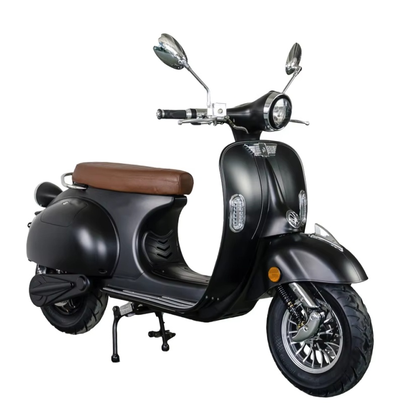 This electric scooter features a retro aesthetic design, with classic body lines paired with a textured brown seat, exuding an elegant style. It's equipped with a 2000W QS brand motor (a top domestic motor brand), delivering strong power; and a 60V20AH removable lithium battery, providing a range of 35-40 kilometers, meeting daily short-distance commuting needs. It offers two top speeds: 25km/h or 45km/h, adapting to different road conditions and driving preferences. It also features high-quality front and rear reinforced shock absorbers, 110/90-10 wheels, a maximum load capacity of 200kg, and a complete lighting system including headlights, turn signals, and brake lights, as well as rearview mirrors and a speedometer, balancing practicality and driving safety, making it a stylish choice for urban commuting and leisure riding.